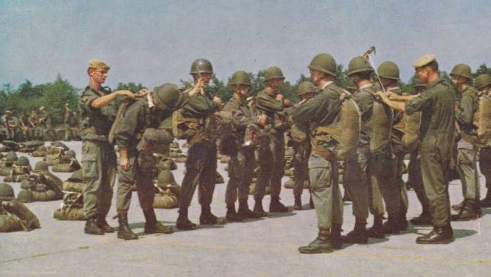 Entrée du CSTAP ( centre entrainement au saut ) de Pau / Idron avant 1947. école des Troupes Aéroportées de PAU / IDRON en 1947 L'école vue du ciel Vérifications des équipements à l'ETAP, années 1963 ou 64