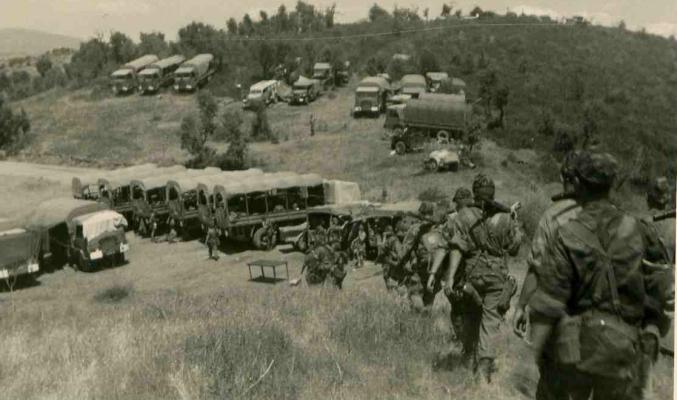 Après quelques deux semaines passées dans leurs bases arrières de l' ALGEROIS les compagnies mises en alertes rejoignent par la route la région de BORDJ BOU ARRERIDJ .Le Régiment fait partie du groupement "B " de l' Opération ETEINCELLES , destinée à nettoyer le Massif du HODNA. |