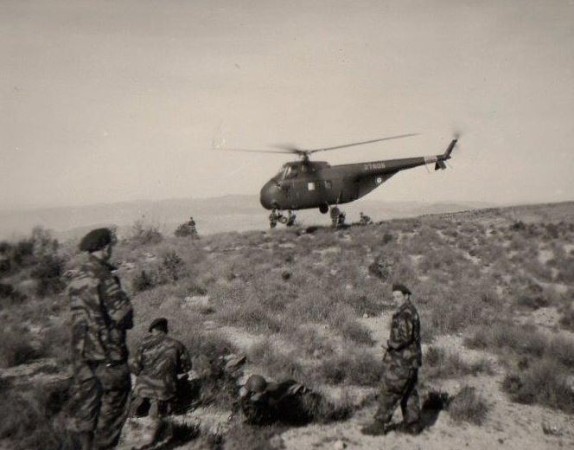 " Marcel PRIGENT est Caporal Chef depuis le 1 juin 1954 .Entrainement sur les obstacles de la piste du risque du Camp PEHAU à PHILIPPEVILLE .A la porte d'un DAKOTA avec son équipe feu " La 1° Section de la 3° compagnie (I Bataillon ) Commandée par le Sous Lieutenant du PELOUAN 1° rang de gauche à droite :Paras CLARSIN-SOCHA-BOURBON-VIEZ-C/C HEMON-S/C BLONDEAU-S/Lt du PELOUAN-Paras ROBERT-ROULAND-AMBLARD 2° rang de gauche à droite: Para PARES-Cal CHATEL-Paras LECORNET-HAJ-ROUX-DAUMERGUE-FERRON-LEMON-Cal MUSSOLESI 3° rang de gauche à droite: C/C PRIGENT-Cal MORVAN-Paras GLEYZE-BRISON-VETTORI-BONNIEU-POCHAT-WIZON- Encadrement de la 3° compagnie -1956-Commandée par le Lieutenant puis Capitaine PAOLI assis devant :S/C ALBERT 1°rang de gauche à droite: C/C PRIGENT-S/C BLONDEAU-Adt MONCHAUSSE-S/Lt du PELOUAN-S/Lt LEMEL-Lt PAOLI-S/Lt PRIOT-Adt GILLES-Sgt SINISCALCO-Sgt GOYER-Para WOYEZ- 2°rang de gauche à droite :C/C DENIAU-1°Cl KELSCH-Sgt GUY-S/C SANCHEZ-Sgt GIUSTI-Caux chefs BERAULT-DARDOISE-AUER-HEMON- 3°rang de gauche à droite:C/C BRUVAERE-Paras GIRAUD-VINCENT-Cal LECLERC-Sgt JACQUIER-Conducteur para BROUSSARD- " Nords 20501 au parking -Nous sommes en 1956 le temps des JU 52 et autres DAKOTA est révolu .Helico Sikorsky en opération dans les AURES En canadienne le Lt LEMEL qui sera très grièvement blessé le 1° juin 1956 " " Au printemps 1956 le 1° RCP est en opération dans la région de KENCHELA " En 1956 tant dans les AURES que dans la région de KENCHELLA ou il a fallu remplacer le 7° Régiment de Tirailleurs Marocains rapatrié en urgence aux FFA, le 1° RCP porte des coups très durs à la rébellion .Photos de deux rebelles abattus ,qui posaient complaisamment en tenue et armement de l' ALN. Cette habitude de porter sur eux des photos souvenir probablement pour prouver leur engagement aux cotés de la rébellion sera très utile pour l'obtention de renseignements et causera bien des désagréments aux rebelles . Entrée du Centre d' entrainement au saut N° 1(CES N° 1) en avril 1953 Marcel PRIGENT et un camarade nommé BELLEVILLE posent devant l' entrée de la zone d'instruction .Le CES N° 1 de PHILIPPEVILLE sera déplacé en novembre 1955 à la Base Aéroportée d' Afrique du nord (BAP.AFN ) formée à partir du III° Bataillon du 1° R.C.P. dissous Le CES N° 1 était installé sur les hauteurs Est de PHILIPPEVILLE .Provenant de la 41 1/2 Brigade Parachutiste il passera le 1. 1. 1955 à la BAP AFN (BLIDA ) Ses agrées seront démontées et installées à BLIDA